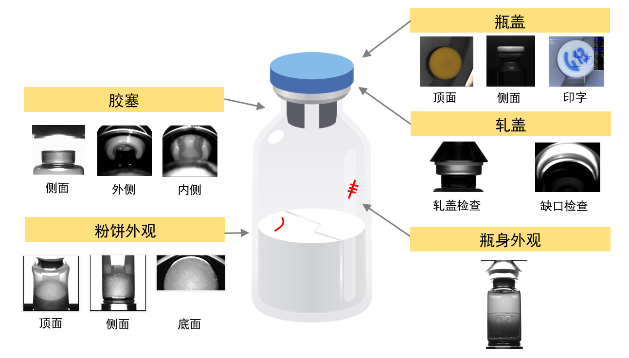 西林瓶(液劑、凍干劑)、安瓿瓶、預充針、滴眼劑及塑料瓶等容器。